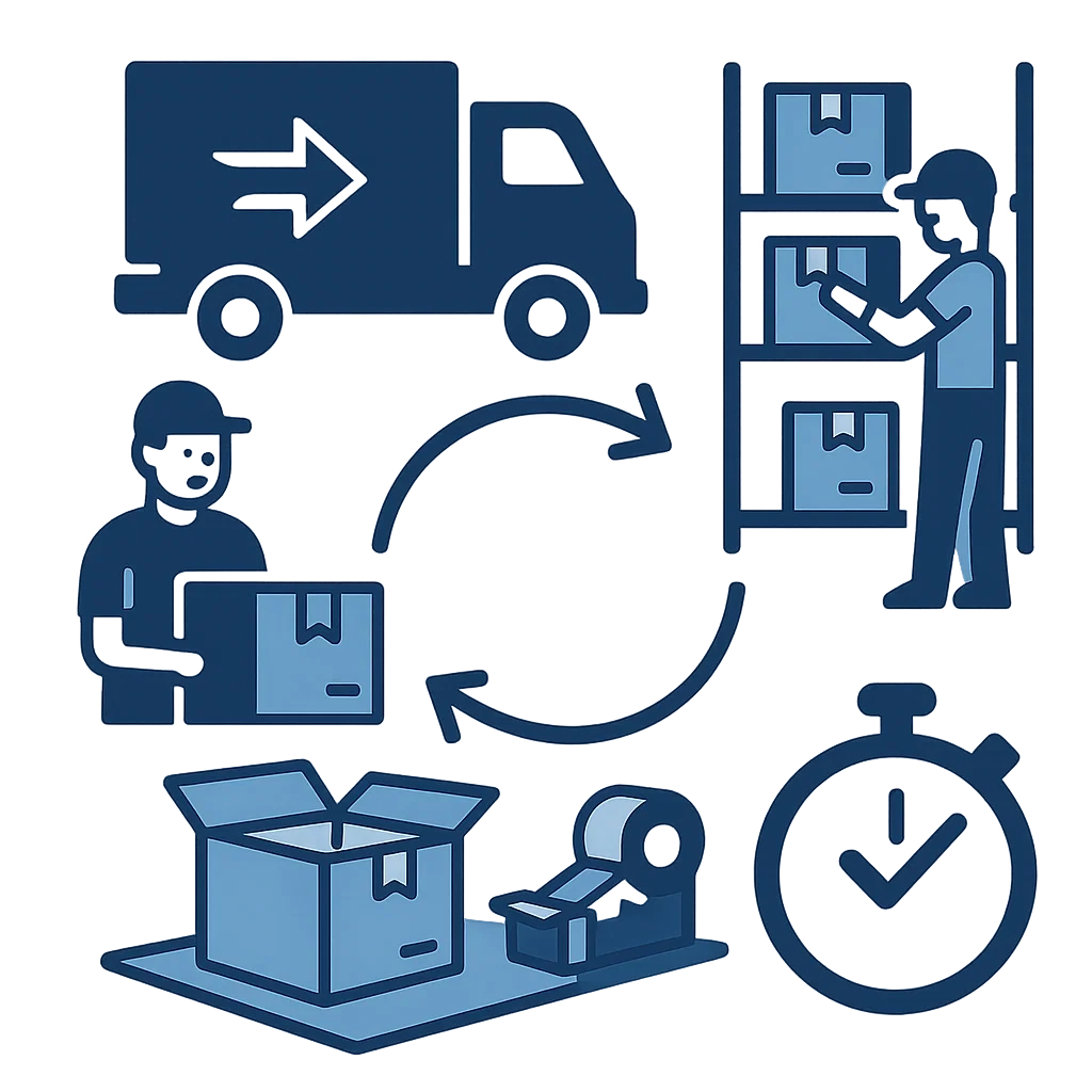Our simple 5-step system handles receiving, picking, packing, and same-day dispatch. Each order is checked carefully to reduce mistakes, giving consistent speed and accuracy, with daily updates that keep your business and customers informed.